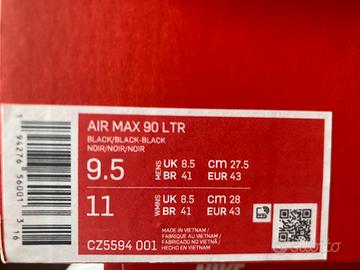 Vendo scarpe Nike Air Max 90 LTR, usate in condizioni ottime, originali come da prova d’acquisto, numero europeo 43, colore black/black-black.