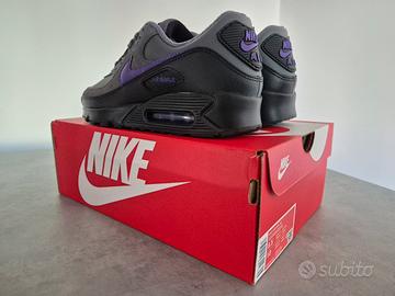 Vendo Nike Air Max 90 PRM colorazione nero/grigio/viola in misto pelle alcantara, con doppio laccio di colore nero. Nuove, mai indossate nemmeno per prova. Collezione 2025/2026. Misure effettive: EU 42 UK 7,5 US 8,5 10 BR 40 CM 26,5 27