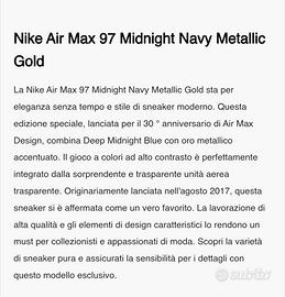 Scarpe Air Max 97 taglia 41 di colore blu usate pochissimo (perché calzano strette) e poi riposte, vendute senza la scatola originale.