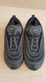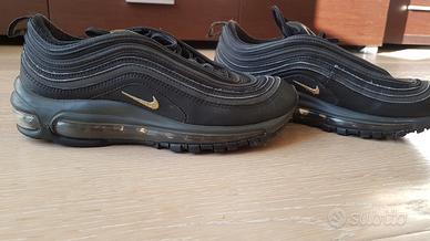 Scarpe Nike Air Max 97 ORIGINALI colore nero con baffo oro taglia 38 EU. Usate al massimo 10 volte praticamente NUOVE come potete vedere dalle suole. Vendo perché mio figlio ha cambiato troppo velocemente la dimensione del piede e gli sono diventate piccole nel giro di poco tempo. VERO AFFARE!!!