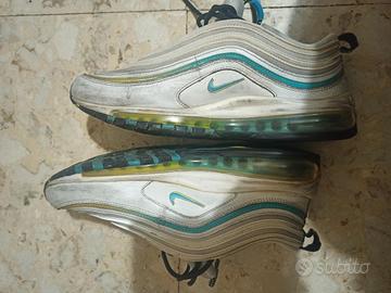 Vendo splendide Nike Air Max 97 della collezione speciale Worldwide Pack. Un modello iconico caratterizzato dai dettagli color azzurro "Fury" e giallo "Volt", con i mini-Swoosh laterali e i pull-tab personalizzati.