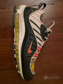 Splendido paio di sneakers sportive NIKE AIR MAX 98, n. 43, adatte per lo sport e la corsa, bianche con dettagli colorati, tenute benissimo e in ottime condizioni, vendesi per inutilizzo. Affare