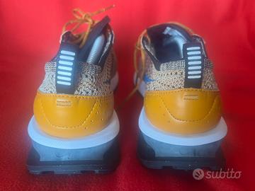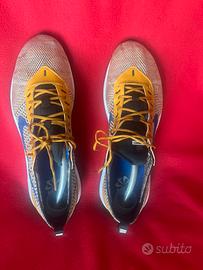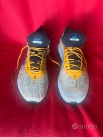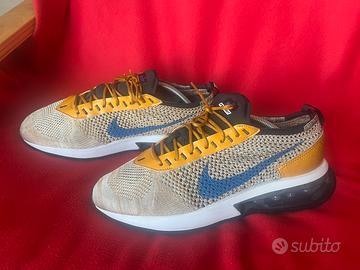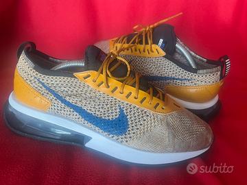 Bellissime Nike super leggere e super performanti: materiale flyknit leggero e traspirante e ammortizzazione air max…peraltro nella versione multicolor, con inserti in pelle beige…molto comode, e secondo me molto belle. Indossata 1 volta, quindi nuove.