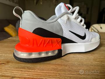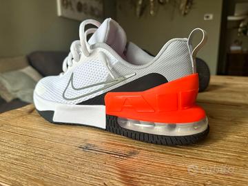 Vendo scarpe originali Nike Air Max Alpha Trainer 6 da uomo, taglia 43, colore bianco/nero con dettagli arancioni fluo.