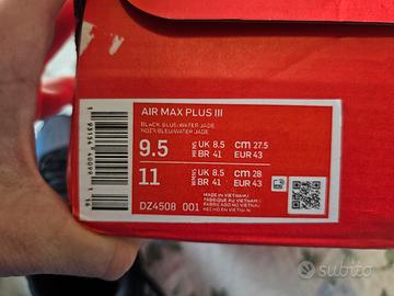 buongiorno, vendo nike air max plus 3 nuove mai usato, colorazione bellissima, mi dispiace venderle ma ne ho troppe, mai usate con ancora carta dentro, n 43