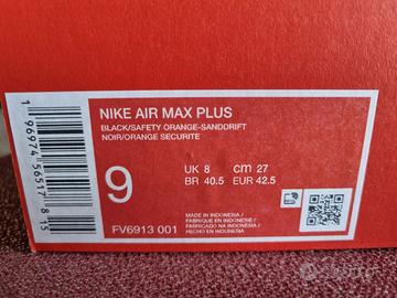 NIKE air max plus black/orange taglia 9 (EUR 42,5)