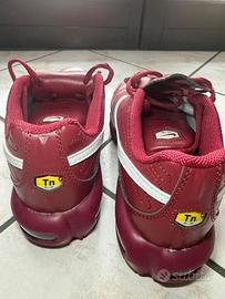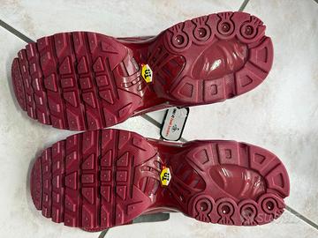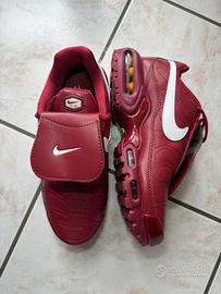 Modello: Nike Air Max Plus (TN) x Tiempo Colore: Bordeaux / White Taglia: 42.5 (EUR) / 9 (US) / 8 (UK) Condizioni: Nuove, mai indossate. Splendido modello ibrido che unisce l'iconica suola Tuned Air alla tomaia ispirata agli scarpini da calcio Tiempo, completa di linguetta ripiegabile con velcro (rimovibile). Colorazione bordeaux profondo con Swoosh bianco a contrasto. Tomaia in ottime condizioni. ⚠️ Nota: Essendo nuove e mai usate, la linguetta è ancora da regolare e aggiustare bene per un fit perfetto. Vengono vendute senza scatola originale.