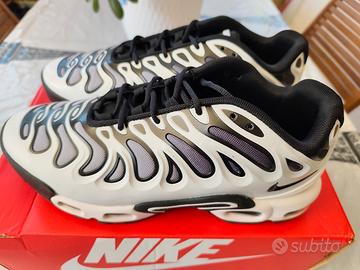 Scarpe Nike Air Max Plus Drift taglia 45. Indossate solo due volte. Presentano lievissimi difetti di fabbrica che ho notato solo al momento di questo annuncio ma comunque irrilevanti. Le consiglio anche per chi calza la taglia 44/44.5. A me vanno leggermente strette e come lunghezza piede faccio 29.5 cm
