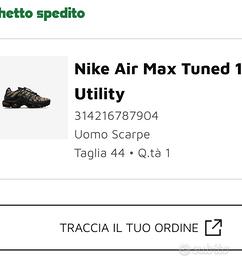 Vendo nike air max tuned utility numero 44 nuove acquistate tramite sito FOOT LOCKER. Vendo per taglia errata; hanno una vestibilità leggermente piu stretta rispetto alle nike air max plus 3. Per ulteriori informazioni non esitate a contattarmi.