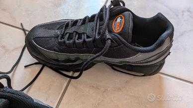 Scarpe tipo Air Max n.39 Usate pochissime volte, in ottimo stato. Colori nero e grigio con dettagli arancioni, suola ammortizzata e design sportivo. Comode, leggere e adatte a uso quotidiano.