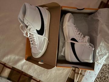 Vendo nike blazer bianche con baffo nero originali ,acquistate in negozio cisalfa . Mai usate ,vendo causa inutilizzo perche abituata ad altro stile di calzatura ..numero 43