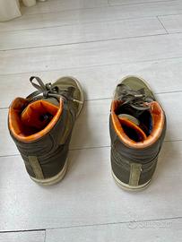 Set di due paia di sneakers Nike Blazers edizione NikeLab, dettagli di seguito: 1.Sneakers Nike Blazer Mid Nike x Mo’ Wax 2014. Misura EU 40,5 (US 7,5) Scatola originale NON inclusa. Scarpe MOLTO usate con numerose macchie e segni di usura. Suole in parte consumate. Non presentano odori e sono state igienizzate. 2.Sneakers Nike Blazer Mid Studio White in pelle. Misura EU 40 (US 7) Scatola originale NON inclusa. Scarpe MOLTO usate con numerose macchie e segni di usura. Stringhe danneggiate e rammendate. Suole in parte consumate. Non presentano odori e sono state igienizzate. Il prezzo si intende come totale per le due paia. A disposizione per eventuali chiarimenti e fotografie aggiuntive!
