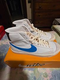 Nike blazer mid vintage 77 bianche con logo nike celeste TG 44