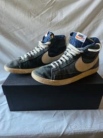 Vendo Nike Blazer Mid originali in pelle scamosciata blu con swoosh bianco.
