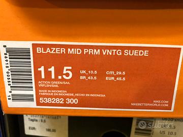 Nike Blazer Mid verdi scamosciate taglia 11.5, 45,5 (Italia) usate pochissimo. Scatola originale