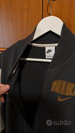 Vendo giacca Nike stile bomber/varsity da uomo, taglia M. Colore nero con maniche bianche e logo NIKE grande sia davanti che sul retro. Chiusura con zip, comoda da indossare e molto carina anche vestita oversize. Condizioni buone, come da foto. Ideale per outfit casual, streetwear e mezza stagione.