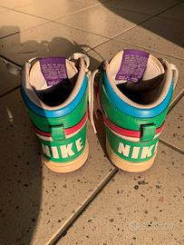 Scarpe Nike colorate acquistate a New York. Le scarpe sono state usate molto e presentano dei segni di usare davanti e sul fianco che ho riportato chiaramente nelle foto. Ma rimangono sempre delle scarpe iconiche Nike.
