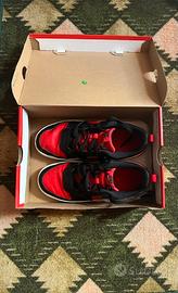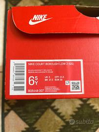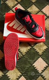 Vendo sneakers Nike Court Borough Low 2 da bambino, colore rosso/nero (stile "Bred"), numero 39. Design ispirato alle classiche Air Jordan, perfette per un look sportivo e urbano.