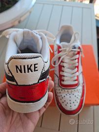 Le linee effetto fumetto e la tinta rossa e nera, che decorano la sneaker e lo Swoosh, sono dipinte a mano con precisione e attenzione ai dettagli.