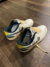 Colore bianco con dettagli verde scamosciati verde scuro e giallo (riedizione modello anni ‘80).
