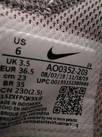 Vendo causa sbaglio taglia scarpe da tennis Nike in tela leggerissima. Misura 36,5. Prezzo originale € 79