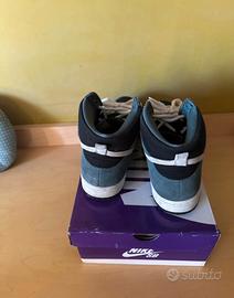 Vendo queste Nike SB Dunk High Pro in colorazione Mineral Slate / Nero / Bianco, taglia 45 EU (US 11). •Condizioni: Usate, con alcuni segni di usura visibili (vedi foto). • Scatola originale: Inclusa. • Descrizione: Scarpe originali Nike SB, ideali per skater e appassionati. La combinazione di suede verde e dettagli neri le rende versatili e alla moda. Spedizione tramite Subito o ritiro a mano disponibile. Contattami per ulteriori informazioni o foto dettagliate