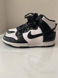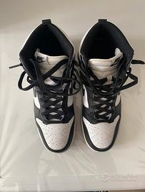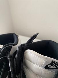 Vendo Nike Dunk High Retro numero 44 comprate ed usate pochissimo non hanno nessun difetto tranne per il laccio della scarpa sinistra dove si è rovinato l'aghetto come si può vedere in foto, il difetto non compromette per niente l'utilizzo delle scarpe. All'interno delle scarpe appena comprate sono stati inseriti i shield antipiega infatti le scarpe sono senza pieghe dovuto anche dal poco utilizzo.