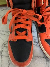 Queste sono un paio di Nike Dunk High, un modello iconico del mondo delle sneakers, noto per il suo design high-top (alla caviglia) originariamente lanciato per il basket negli anni '80.