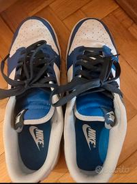 Vendo queste splendide Nike Dunk Low (ragazzo/uomo), originali con un mix di blu navy, royal e bianco.