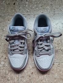 Vendo per attuale inutilizzo questo paio di sneakers di colori bianco e grigio da donna marchio Nike modello Dunk Low. Acquistate ma indossate solo tre volte, perché a quanto pare nonostante sia il mio numero di piede, mi stanno troppo piccole, consiglio magari a chi ha un piede più piccolo. Le parti sopra delle scarpe sono in perfette condizioni, senza macchie sporche, invece sotto le suole sono leggermente macchiate ma le ho comunque pulite con prodotti per la pulizia delle sneakers. Taglia: 36 Per qualsiasi informazione contattatemi sulla chat di Subito!