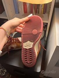 Vendo Nike Dunk Low originali, colorazione arancio/marrone con swoosh bordeaux.