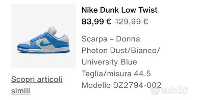 Scarpe NIKE DUNK LOW TWIST bianche e azzurre Originali da donna Acquistate da sito Nike