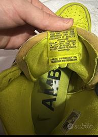 Nike dunk per Ambush colorazione vedere lime con logo nero che fuoriesce un po dal rentro della scarpa. Dotata di lacci di ricambio verdi, bianchi e neri. Contattate se veramente interessati