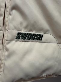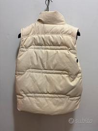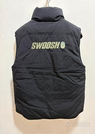 Gilet imbottito Nike reversibile, lato esterno nero con logo swoosh frontale e scritta grande sul retro, lato interno color beige chiaro. Modello smanicato stile puffer / piumino senza maniche, con zip frontale e tasche laterali. Taglia M. Vestibilità regolare leggermente morbida. Capo versatile e caldo, ideale per stagione autunno/inverno o per layering streetwear. Condizioni buone: presenti normali segni di utilizzo ma nessun difetto evidente rilevante. Misure indicative: lunghezza circa 70 cm, larghezza circa 50 cm. Perfetto come gilet casual, streetwear o sportivo.