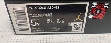 Nike jordan 1MID (GS) misura 38 Colere bosnco, verde menta e nero Originali complete di scatola