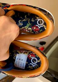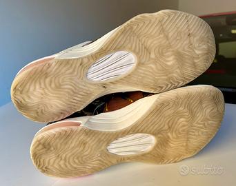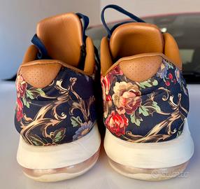 Nike KD VII EXT "Floral" QS (Quickstrike). Modello rarissimo del 2015, taglia US 11 / 45. Condizioni spettacolari, sembrano Deadstock (DS) o indossate una volta per prova, giudicate voi dalle foto della suola e delle solette floreali. Dettagli premium: tomaia in tessuto satinato con pattern floreale vivace e strap mediale in morbida pelle marrone. Intersuola bianca con unità Zoom Air visibile nel tallone. Suola traslucida ancora in ottimo stato. Scatola Quickstrike originale lucida inclusa. Un pezzo immancabile per veri collezionisti di Kevin Durant o amanti delle sneakers uniche. Altre foto disponibili su richiesta. Spedizione rapida e imballaggio protetto.