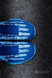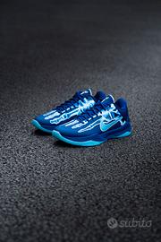The Nike Kobe 5 Protro X-Ray is a vibrant homage to Kobe Bryant's legendary career, taking inspiration from the iconic X-ray T-shirt that featured his hand adorned with five championship rings. Reimagining this concept, the X-ray design is applied to the upper of the Kobe 5 with glow in the dark elements, depicting an X-ray of a foot. Done in deep royal blue, baltic blue, and glacier blue, this bold sneaker also features glow-in-the-dark outsoles, adding an extra layer of flair to an already striking silhouette.