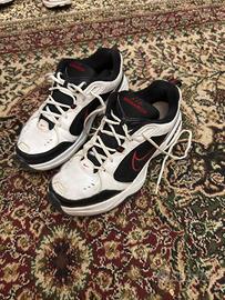 Scarpa da ginnastica Nike Monarch taglia 45 EU colore bianco nero con particolari rossi. Condizioni ottime utilizzata poche volte. Accetto proposte e spedisco