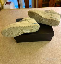Nike Air Force 1 Low White Laser Blue Metallic Silver, taglia EU 44, usate, sempre tenute con antipiega.