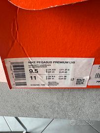 Vendo Nike Pegasus Premium uomo numero 43 . Praticamente nuove . Usate mezz’ora . Le vendo perchè preferisco avere piu agio in punta e acquistare un numero 44 .ho scontrino d’acquisto. Nuove costano 209 . Pagate in offetta 159 .