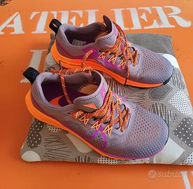 FAI IL PIENO DI ENERGIA, DALLA STRADA ALLO STERRATO. Il running è il tuo rituale quotidiano, che ti porta dalla strada al sentiero, alla ricerca di nuove avventure e nuovi obiettivi. Raggiungili con Nike React Pegasus Trail 4, grazie al supporto e all'elasticità a ogni passo. La trazione sotto il piede ti consente di esplorare terreni rocciosi, mantenendo comunque un'andatura fluida. I lacci offrono supporto nell'area mediale, consentendoti di trovare la calzata e la sensazione giuste. La scarpa con le ali è pronta per un viaggio avventuroso: è ora di volare. Leggera e robusta I dati dei runner sono stati utilizzati per creare e posizionare il mesh tecnico lungo tutta la tomaia per una sensazione di robustezza, leggerezza e traspirabilità . La pelle extra sulla punta offre maggiore resistenza. Supporto a ogni passo La tecnologia Flywire integrata con una fascia sull'area mediale offre un supporto completo che aiuta a mantenere il piede in posizione. Energia in movimento La tecnologia Nike React è una schiuma leggera e resistente che offre un'andatura uniforme e reattiva. Aderenza durante le ripetizioni La suola in gomma ha un motivo generativo di trazione, realizzato grazie ai dati dei runner come te. Offre aderenza sicura nelle aree principali, consentendo una posizione eretta e stabile sui sentieri rocciosi e un'andatura fluida sulla strada. Realizzata per resistere all'abrasione La gomma della suola avvolge l'avampiede offrendo maggiore durata e protezione. SPECIFICHE Codice produttore: DJ6159-500 Categoria tecnica: A5 - Trail running Genere: DONNA VALORE: 139 EURO
