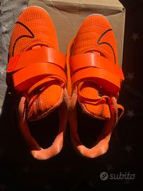 Scarpa per sollevamento pesi. Presenta intersuola sostenuti e suola ampia e piatta. Le fascette regolabili mantengono stabile il piede durante gli allenamenti. Vendo per inutilizzo. Prezzo trattabile.