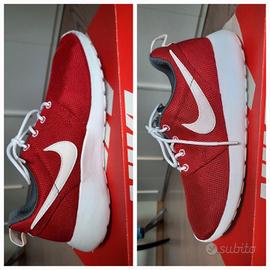 Nike modello Rosherun GS rosse, leggere e morbide, ottime per l'estate. ❗️attenzione, sono segnate come n. 38, ma vestono meno: 37/37,5, pianta stretta, la soletta interna misura 24 cm. Condizioni ottime, non presentano difetti, usate poco per cambio taglia.