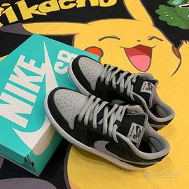 The Nike SB Dunk Low J-Pack Shadow features a black, white, and Shadow Grey leather and suede upper, with black being the predominant shade for most of this model. From there, a swooping Shadow Grey "Swoosh" design looping back toward Nike lettering on the heel and a white "Zoom Air" unit in the heel complete the design.