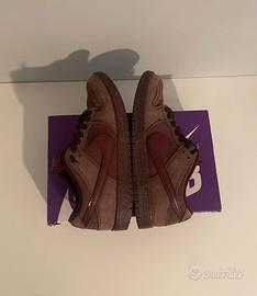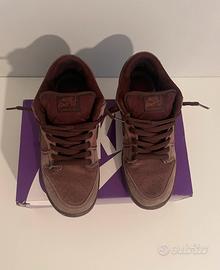 Modello: Nike SB Dunk Low Pro Colorazione: City of Love Pack (Burgundy Crush/Dark Pony) Taglia: 42,5 Condizioni: indossate una sola volta Dettagli del prodotto Splendida edizione limitata rilasciata per celebrare l'amore (San Valentino), caratterizzata da materiali premium e dettagli curatissimi. • Tomaia: Mix di nabuk, pelle scamosciata e tessuti testurizzati in tonalità bordeaux profondo. • Dettaglio Iconico: II "filo rosso del destino" ricamato sul logo della linguetta SB, un tocco unico di questo pack. • Suola: In tinta con cuciture a contrasto che richiamano il tema dell'articolo. • Comfort: Essendo un modello SB (Skateboarding), presenta la linguetta imbottita e l'unità Zoom Air nel tallone per il massimo comfort.