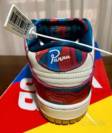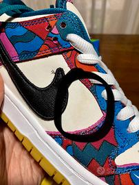 Le Nike SB Dunk Low Parra Abstract Art presentano un design audace ispirato alla pop art, riflettendo la visione creativa dell'artista olandese Parra. La tomaia in pelle bianco sporco offre uno sfondo pulito, mettendo in risalto i motivi vibranti e retrò che caratterizzano le sovrapposizioni. Queste opere d'arte colorate rendono la scarpa un pezzo unico e distintivo. Un piccolo mini-Swoosh ricamato sulla punta aggiunge un tocco di dettaglio, mentre la suola in gomma accentua l'atmosfera nostalgica. Con i suoi colori vivaci e il tocco artistico, questa sneaker è ideale per chi cerca di esprimere la propria individualità e passione per l'arte attraverso le proprie calzature.