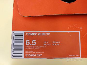 Vendo scarpa calcio a 5 originale Nike Tiempo Guri Turf linea >"Ronaldinho", in pelle naturale, colore nero