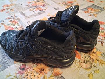 Vendo scarpe Nike TN nere da bimbo, completamente nuove. Acquistate in Egitto, numero 34 ma con vestibilità ridotta (calzano come un 32). Purtroppo risultano piccole per mio figlio e non sono mai state utilizzate. Prezzo di acquisto: 65€ Prezzo di vendita: 40€ Per info scrivetemi in privato.