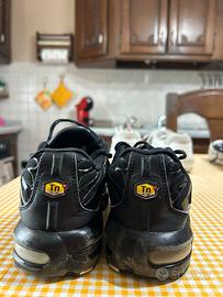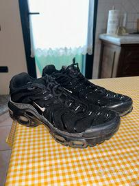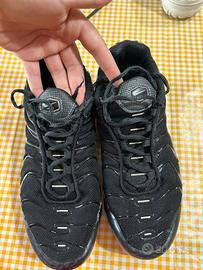 Scarpe nere con riflessi grigi e bianchi.