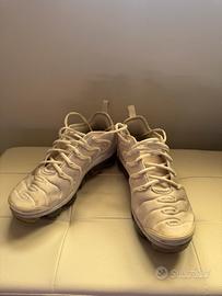Vendo Nike VaporMax nr. 43 di colore bianco. Sono state usate ma tenute in buone condizioni, presentano una leggerissima usura ma non presentano parti rotte o difettate.